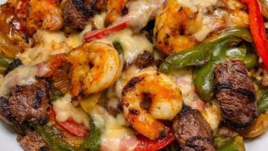 Cheesy Steak & Shrimp Fajita Skillet