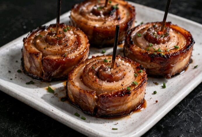 Pork belly lollipops are a visually stunning and flavor-packed appetizer made by rolling strips of pork belly into tight spirals, then securing them with skewers before cooking. Once caramelized, they develop a glossy, sticky exterior with crispy edges and a tender, juicy center.